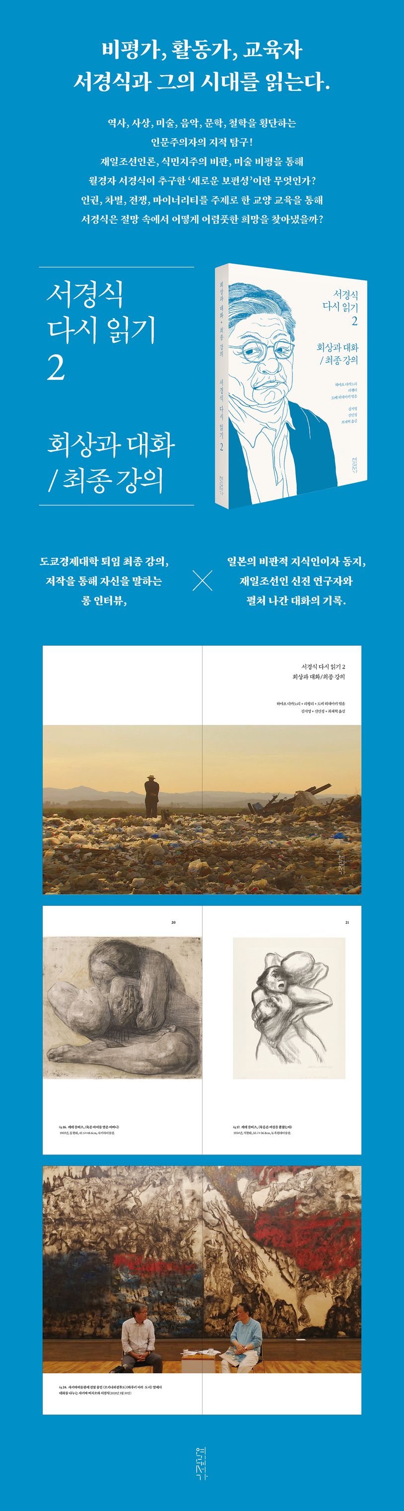 1부에서는 20년간 ‘인권과 마이너리티’의 쟁점을 설파하고 인문교육으로서의 예술학의 위치를 증명했던 도쿄경제대학에서의 마지막 강의록을 수록했다. 또한 시대의 목격자이자 증언자로서의 자신의 삶을 저작을 통해 회고하는 롱 인터뷰를 게재했다. 인터뷰에서는 서승, 서준식 두 형의 옥중투쟁을 지원하며 만난 일본의 진보적 지식인과의 연대의 기억과 함께, 학자가 아니라 ‘글쟁이’를 자임하며 ‘아마추어’의 입장에서 펼친 서경식의 비평 언어가 생생하게 전해진다. 그밖에 최덕효, 리행리, 조경희 등 영국, 일본, 한국 각자의 현장에서 활동하는 젊은 세대 재일조선인 지식인과의 대담은 디아스포라의 의미와 함께 ‘재일조선인론’의 과거와 현재, 미래를 되짚어 볼 기회를 제공한다.