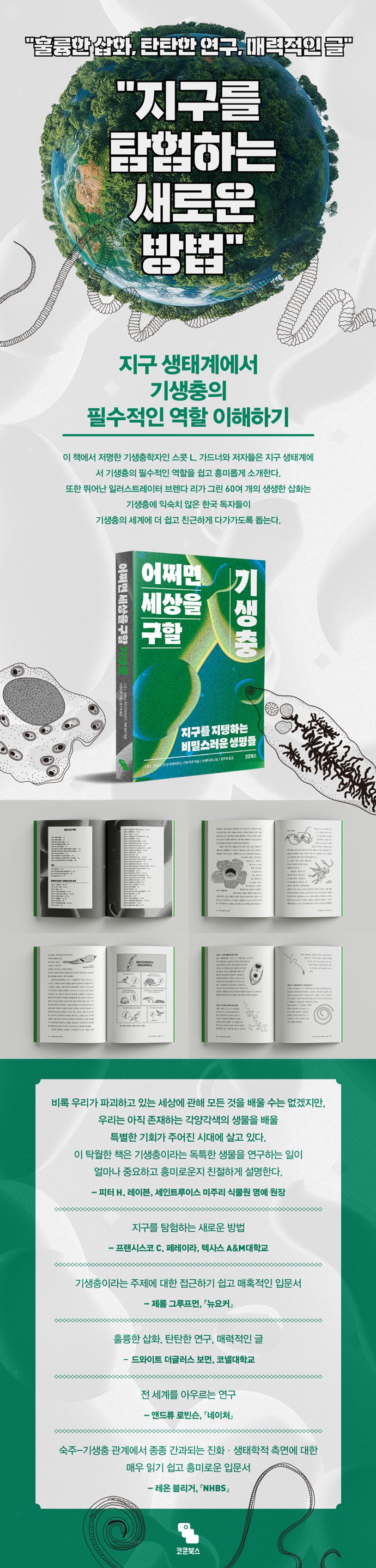 궁극적으로 이 책은 기생충이 소름 끼치는 벌레 이상의 존재라는 사실을 밝힌다. 또 지구 생물 다양성의 중요한 구성원인 기생충에 대해 흥미진진한 수수께끼들과 가장 최신의 정보를 제공한다.