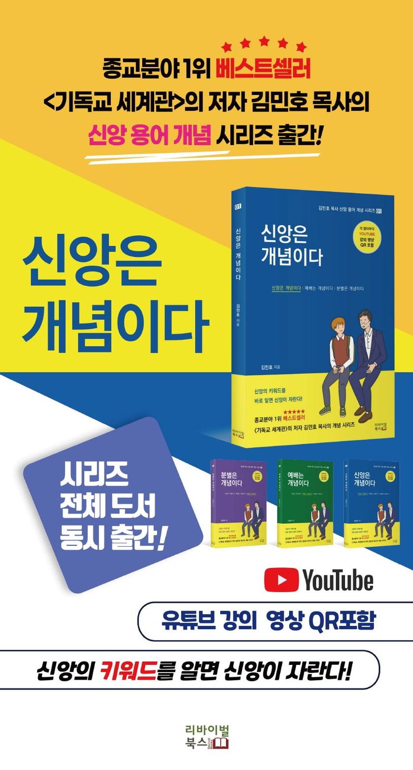베스트셀러 작가 김민호 목사의 〈신앙 용어 개념 시리즈〉의 첫 번째 책인 『신앙은 개념이다』는 성경적 신앙 용어를 바르게 정립하지 못하여 교회 안에 만연된 신앙적 갈등을 해소하게 돕는 좋은 교과서이다. 타종교와 이단들도 함께 사용하는 단어들이 있다. 이를 테면 하나님, 성경, 복음, 믿음, 구원, 섬김, 겸손, 거룩 등과 같은 단어들이다. 이처럼 용어가 같아도 개념이 다르면 완전히 다른 것이 된다. 저자는 혼란스럽게 사용되는 신앙 용어들을 성경적으로 정의하고 있다. 이에 독자들은 선명하고도 확실한 용어의 개념을 갖게 될 것이다. 각 챕터마다 유튜브 강의 영상이 QR코드로 수록되어 있다. 모든 성도들이 스스로 용어를 정리할 수 있는 데 귀중한 도움을 줄 것이다.