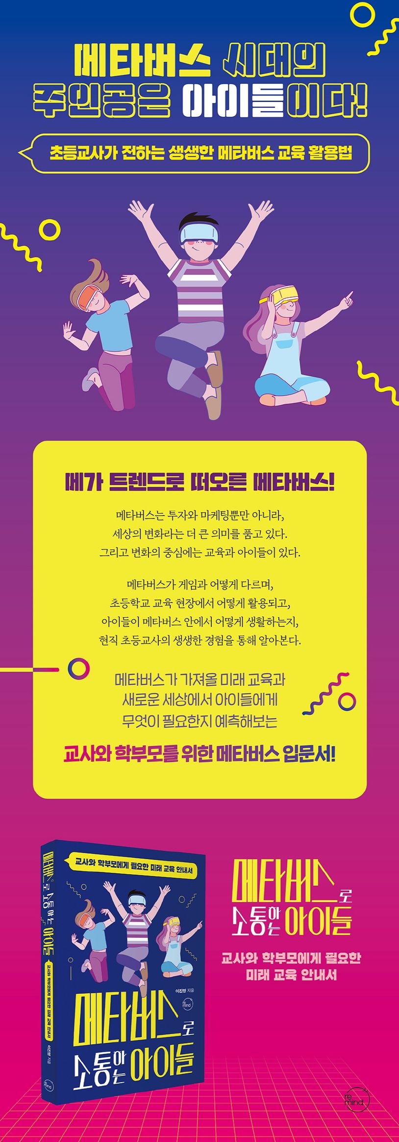코로나19로 인해 비대면 문화가 확산되면서 ‘메타버스’가 메가 트렌드로 떠올랐다. 현재 사람들은 메타버스를 대부분 투자와 마케팅의 관점에서만 바라보고 있다. 그리고 메타버스를 단순히 게임으로 생각하고 부정적으로 생각하는 경우도 많다. 하지만 메타버스는 게임이 아니라, 세상의 변화라는 더 큰 의미를 품고 있다. 그 변화의 중심에는 교육과 아이들이 있다. 『메타버스로 소통하는 아이들』에서는 메타버스가 게임과 어떻게 다르며, 초등학교 교육 현장에서 어떻게 활용되고, 아이들이 메타버스 안에서 어떻게 생활하는지, 현직 초등교사의 생생한 경험을 통해 알아본다. 그리고 메타버스가 가져올 미래 교육과 새로운 세상에서 아이들에게 무엇이 필요한지 예측해본다.
