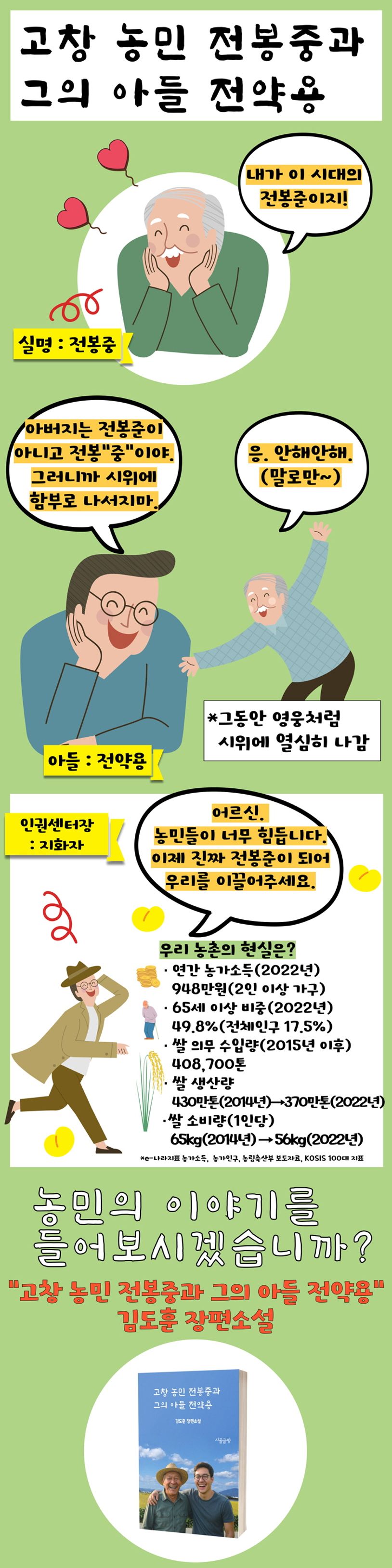 소설 속 전봉중은 이 현실을 어떻게 극복할까요? 짝퉁이 진짜가 되어 가는 과정이 궁금하시지 않으신가요? 이 소설을 통해 농민들의 고된 삶을 이해하고, 그들을 응원해 주시길 바랍니다.