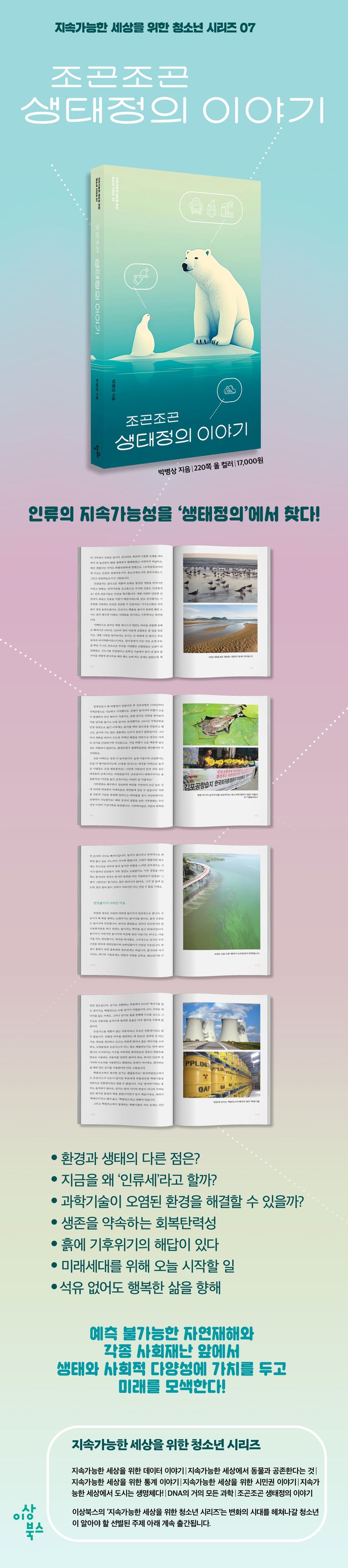 이상북스의 ‘지속가능한 세상을 위한 청소년 시리즈’는 과학기술의 발달과 기후ㆍ생태 위기 등 미래 사회의 다양한 변화에 대응하기 위해 청소년이 알아야 할 지식과 정보, 그리고 깊이 있는 가치를 전합니다.