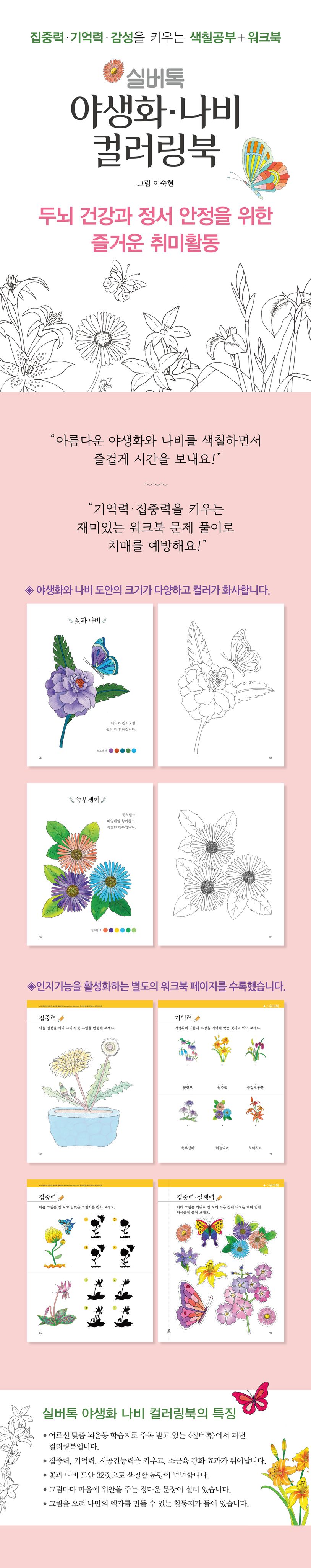 실버톡 야생화 나비 컬러링북 (집중력 기억력 감성을 키우는 색칠공부+워크북)