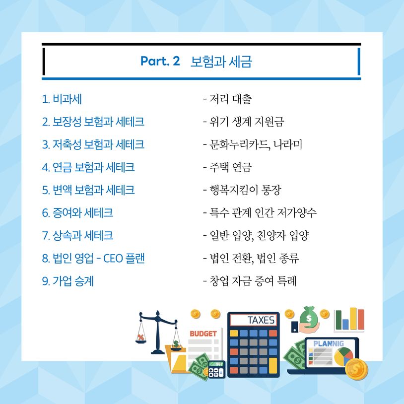 Part 2에서는 비과세, 보장성·저축성·연금·변액보험과 세금, 증여·상속, 법인영업, 가업승계 등 영업 현장에서 곧바로 활용할 수 있는 상담 화법과 계약 연결 전략을 수록했습니다. 세테크 상담 역량을 높이고 영업 경쟁력을 확보하고자 하는 보험인·금융인에게 즉시 도움이 되는 실전 지침서입니다.