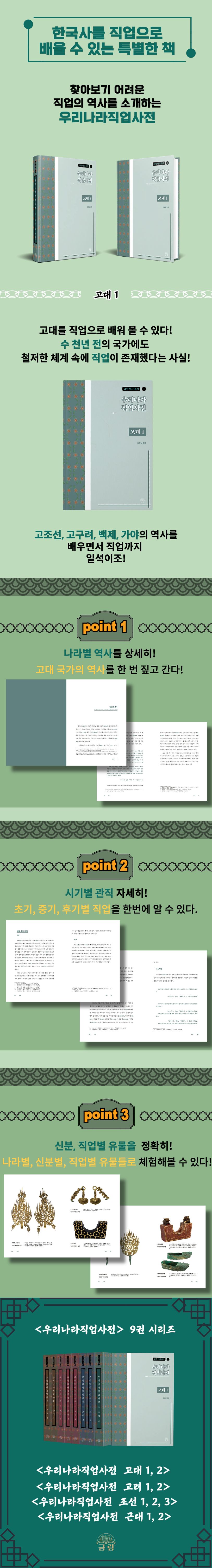 고대는 나라마다 각기 다른 직업이 있었고 나라의 특색에 맞춰 직업이 소속된 기관들로 구분되었다. 소속 기관은 나라의 성장을 위해 설치되거나 백성을 위한 기관이었다. 이곳에서 근무하는 자들은 모두 품계에 맞춰 직업을 가졌고, 그들을 돕는 평민들도 등장했다. 과연 고대는 어떤 기관이 있었고 어떤 직업이 있었으며 이 직업이 훗날 고려나 조선, 그리고 현재까지 어떤 영향을 미쳤는지 책을 통해 찾아가길 바란다.