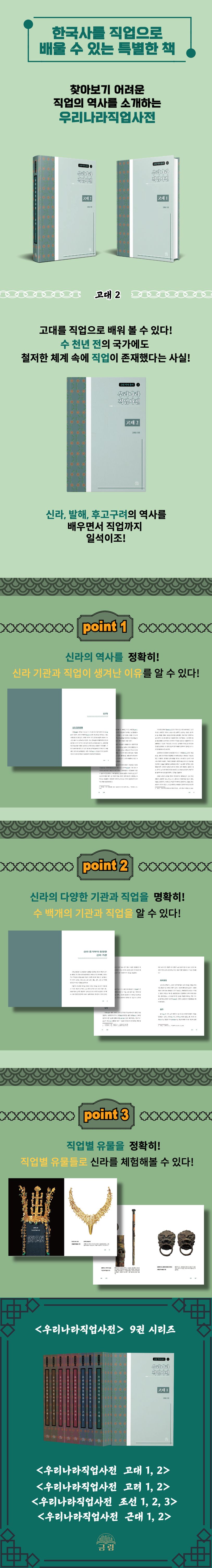고대는 나라마다 각기 다른 직업이 있었고 나라의 특색에 맞춰 직업이 소속된 기관들로 구분되었다. 소속 기관은 나라의 성장을 위해 설치되거나 백성을 위한 기관이었다. 이곳에서 근무하는 자들은 모두 품계에 맞춰 직업을 가졌고, 그들을 돕는 평민들도 등장했다. 과연 고대는 어떤 기관이 있었고 어떤 직업이 있었으며 이 직업이 훗날 고려나 조선, 그리고 현재까지 어떤 영향을 미쳤는지 책을 통해 찾아가길 바란다.