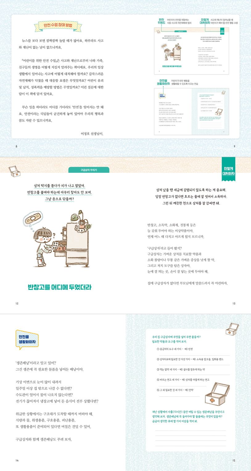 이런 질문에 대한 답이 이 책에 담겨 있어요. 무슨 일을 하더라도 어디를 가더라도 ‘안전’을 잊어서는 안 돼요. 안전이라는 디딤돌이 굳건하게 놓여 있어야 우리의 행복과 꿈도 자랄 수 있으니까요.