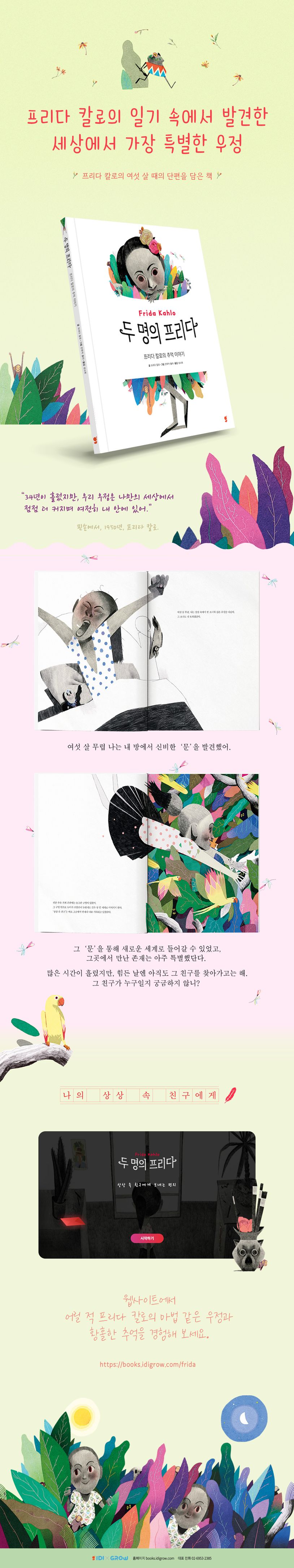 여섯 살의 어린 프리다 칼로는 잊지 못할 누군가를 만나게 됩니다. 그녀가 만난 사람은 앞으로 몇 년 동안의 감정적 교류를 하며 ‘두 명의 프리다’로 승화될 상상 속 친구였지요. 그 친구와 시간을 보낼 때면 그녀는 마음껏 자유로울 수 있었습니다. 여섯 살 어린 소녀가 혼자서 시간을 감내하며 지낼 수 있었던 건 언제든 그녀가 원하는 순간에 만날 수 있었던 상상 속 친구 덕분이었겠지요.