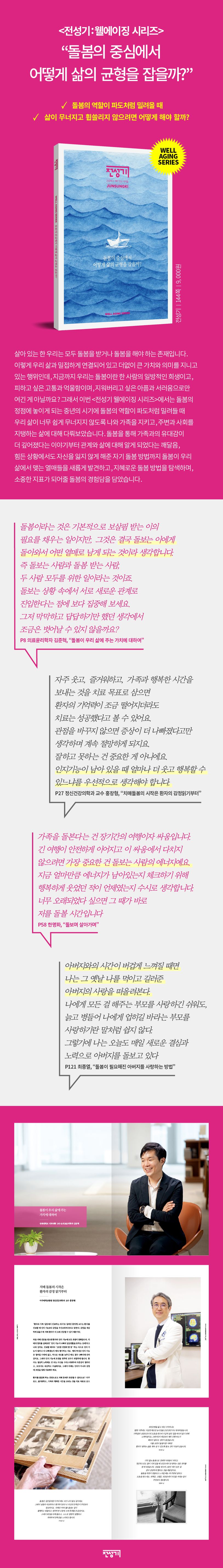 살아있는한우리는모두돌봄을받거나돌봄을해야하는존재입니다.이렇게우리삶과밀접하게연결되어있고더없이큰가치와의미를지니고있는행위인데,지금까지우리는돌봄이란한사람의일방적인희생이고,피하고싶은고통과억울함이며,지워버리고싶은아픔과서러움으로만여긴게아닐까요?그래서이번〈전성기웰에이징시리즈〉에서는돌봄의정점에놓이게되는중년의시기에돌봄의역할이파도처럼밀려들때우리삶이너무쉽게무너지지않도록나와가족을지키고,주변과사회를지탱하는삶에대해다뤄보았습니다.돌봄을통해가족과의유대감이더깊어졌다는이야기부터관계와삶에대해알게되었다는깨달음,힘든상황에서도자신을잃지않게해준자기돌봄방법까지돌봄이우리삶에서맺는열매들을새롭게발견하고,지혜로운돌봄방법을탐색하며,소중한지표가되어줄돌봄의경험담을담았습니다.