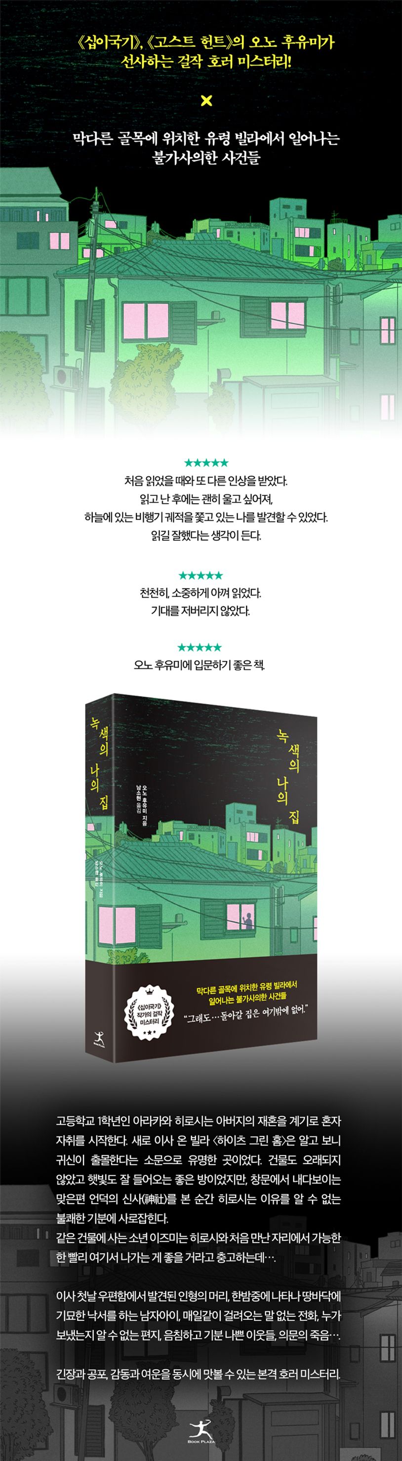고등학교 1학년인 아라카와 히로시는 아버지의 재혼을 계기로 혼자 자취를 시작한다. 새로 이사 온 빌라 ‘하이츠 그린 홈’은 알고 보니 귀신이 출몰한다는 소문으로 유명한 곳이었다. 건물도 오래되지 않았고 햇빛도 잘 들어오는 좋은 방이었지만, 창문에서 내다보이는 맞은편 언덕의 신사(神社)를 본 순간 히로시는 이유를 알 수 없는 불쾌한 기분에 사로잡힌다. 같은 건물에 사는 소년 이즈미는 히로시와 처음 만난 자리에서 가능한 한 빨리 여기서 나가는 게 좋을 거라고 충고하는데….