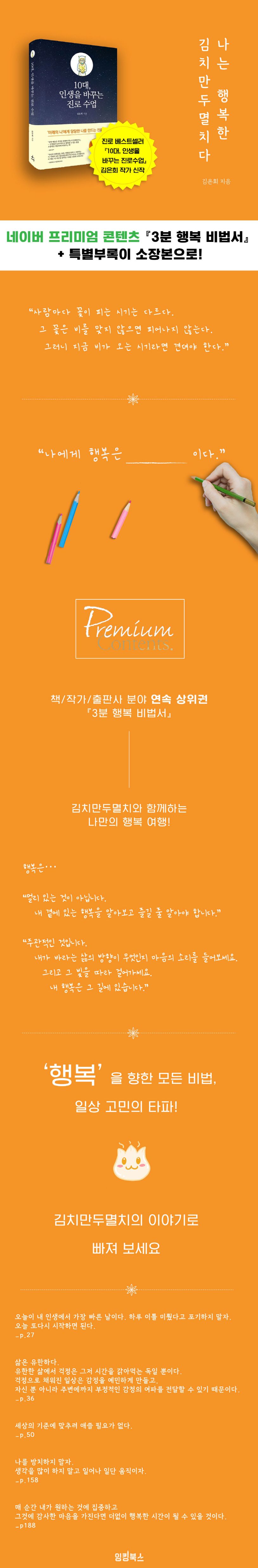 베스트셀러 〈10대, 인생을 바꾸는 진로수업〉 에 이어 수 많은 독자들이 작가 김은희의 글에 힘을 얻고 열광하는 이유는 진심어린 마음으로 공감하기 때문이다. 작가는 막연히 꿈을 가져라! 행복해라! 가 아니라, 행복해지기 위한 구체적인 방법들을 안내한다. 살다가 길을 잃었을 때, 막연할 때, 나약해졌을 때, 오뚝이처럼 다시 일어설 수 있도록 동기부여 방법을 알려준다.