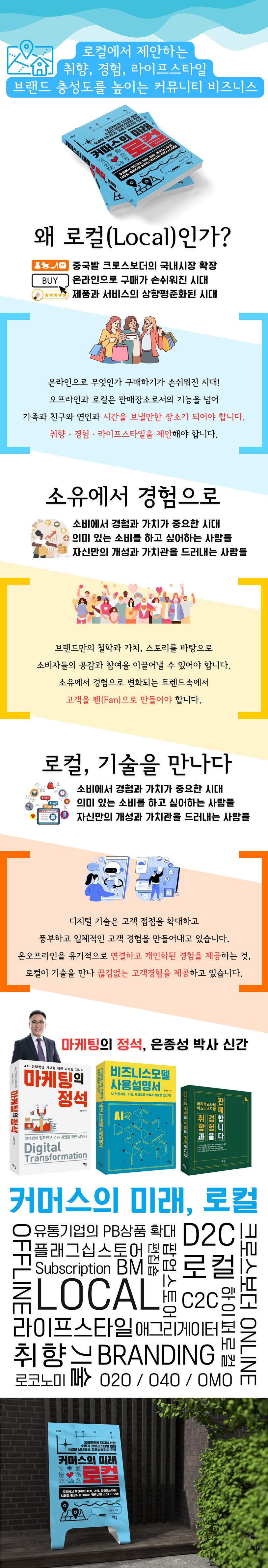 온라인과 오프라인의 경계가 사라지는 시대, 〈커머스의 미래, 로컬〉은 O2O, O4O, OMO 등 혁신적인 비즈니스 전략과 실행 방안을 제시합니다. 온라인과 오프라인을 유기적으로 연결하고, 통합된 고객 경험을 제공하는 방법에 대한 저자의 통찰은 비즈니스 혁신을 고민하는 모든 이들에게 필수적인 가이드가 될 것입니다.