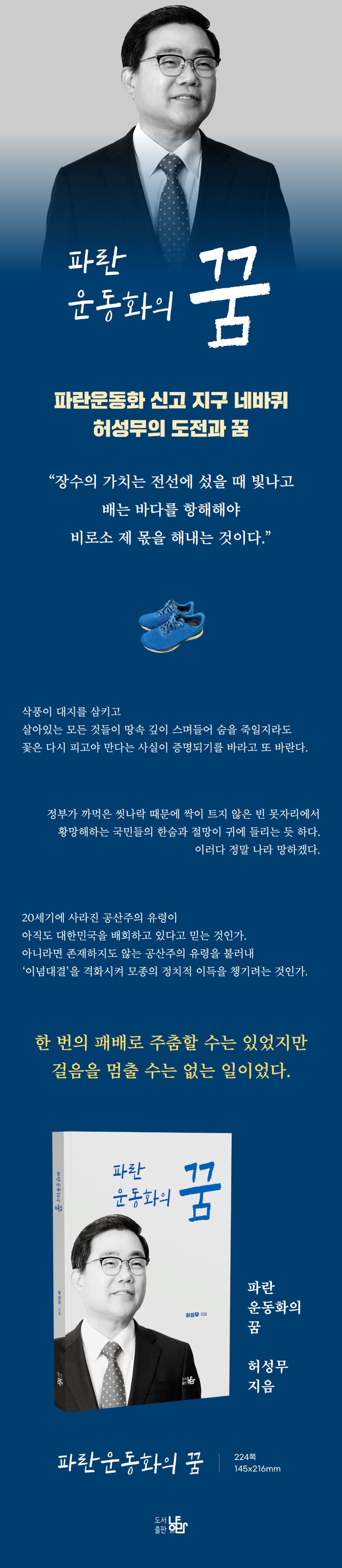 민주당 최초의 창원시장으로 파란운동화를 신고 걸었던 길, 그 길 위의 수많은 고민과 도전, 다짐들을 모여 한 권의 책이 되었다. 창원시장으로 시민들에게 다정한 웃음과 격려, 희망을 전했던 저자는 이 책을 통해 그동안의 경험과 새로운 희망을 이야기한다.