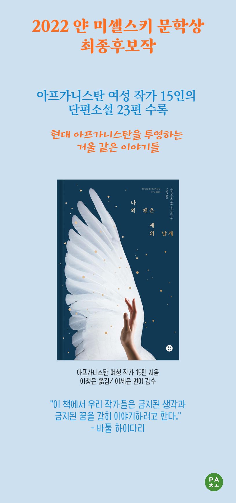 현대 아프가니스탄 여성 작가 15인이 쓴 단편소설 모음집 『나의 펜은 새의 날개』가 국내 최초로 파초 출판에서 출간되었다. 소설집에는 여성 작가 15인이 집필한 23편의 단편소설이 수록돼 있다. 전쟁과 테러로 얼룩진 근·현대사 속에서 아프가니스탄 여성