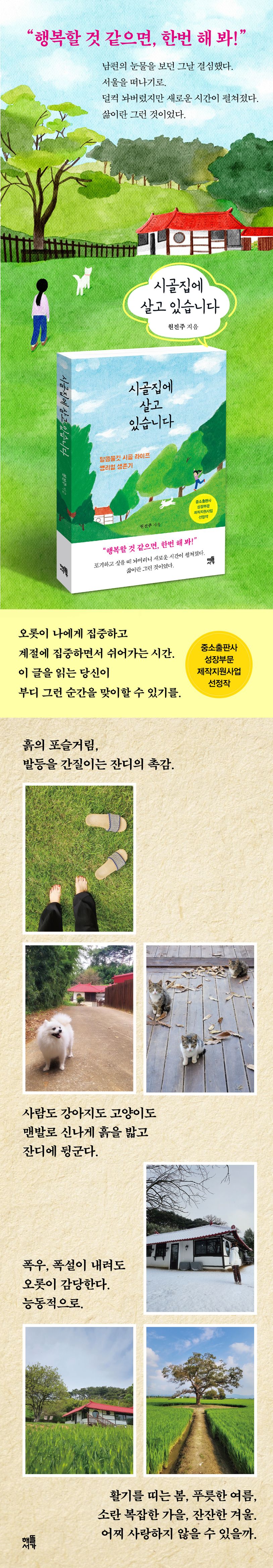 방송 PD로 살았던 남편은 이제 완전히 시골에 정착했고, 작가는 여전히 도시와 시골을 오가며 방송 프로그램을 집필하고 있다. 잔잔한 시골의 삶에서 얻은 기운을, 복작복작 서울의 삶을 살아가는 데 쓰고 있다.