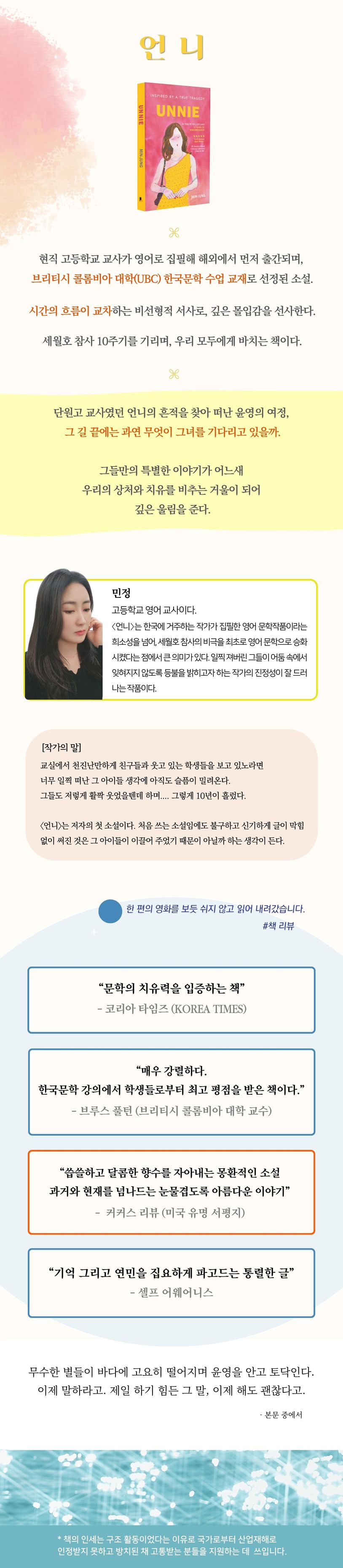 현직 고등학교 교사가 영어로 집필해 해외에서 먼저 출간되며, "브리티시 컬럼비아 대학(UBC) 한국문학 수업 교재"로 선정된 소설.