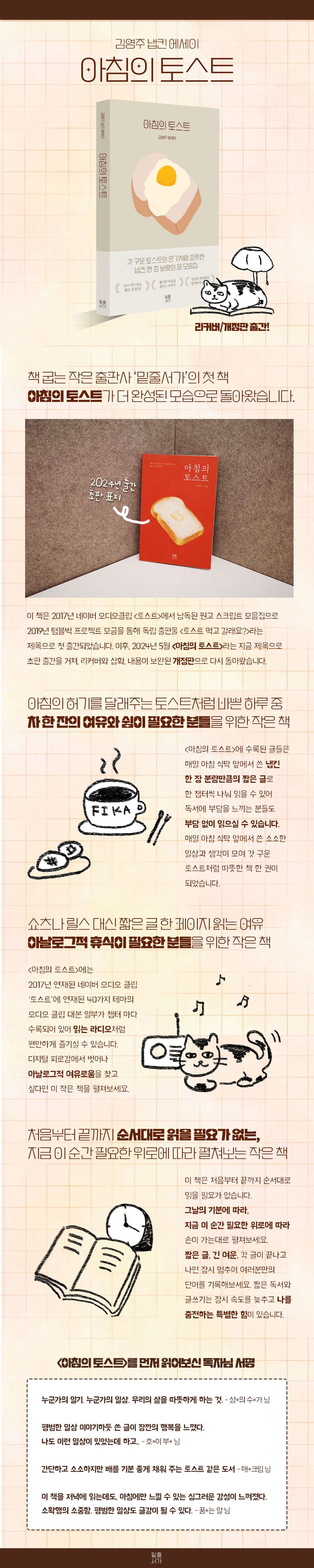 책 굽는 작은 출판사 ‘밑줄서가’의 《아침의 토스트 (리커버/개정판)》가 더 완성된 모습으로 돌아왔습니다.