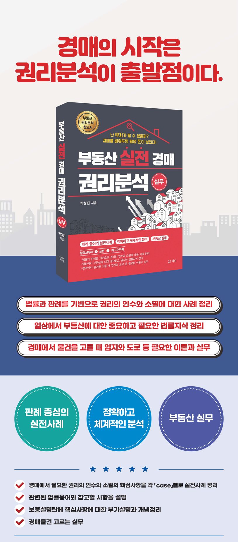 그러므로 이러한 물건에 접근하기 위해서는 차원 있는 권리분석의 기술과 물건에 대한 가치분석이 필요하므로 이 양자를 명쾌하게 해결할 수 있는 책이 바로 저자가 지은 책이라고 감히 말할 수 있다.