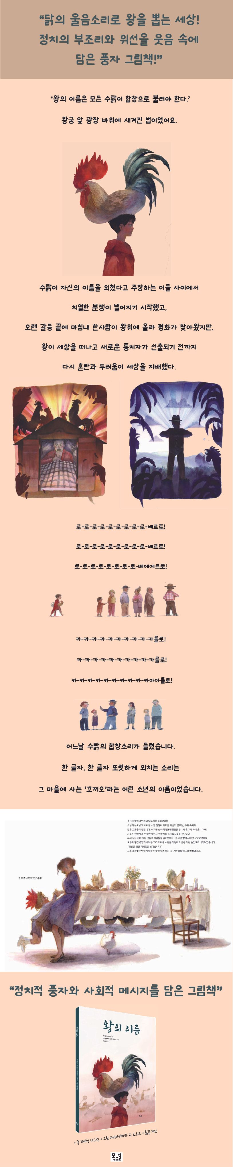 아주 먼 옛날, 시간과 공간 속으로 사라진 한 왕국이 있었습니다. 이 나라는 왕을 뽑는 방법이 아주 독특했어요.‘왕의 이름은 모든 수탉이 합창으로 불러야 한다.’