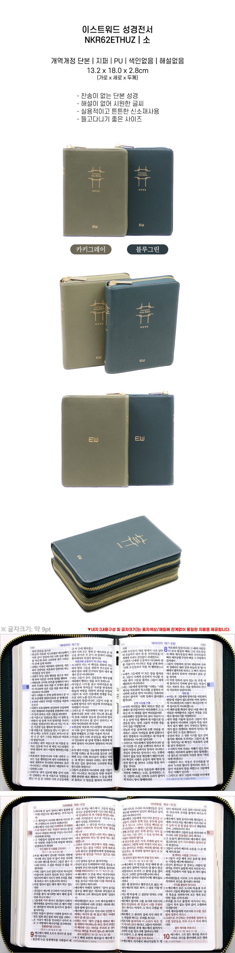 이스트워드 성경전서(NKR62ETHUZ/소/단본/지퍼/PU/무색인/블루그린) (개역개정판)