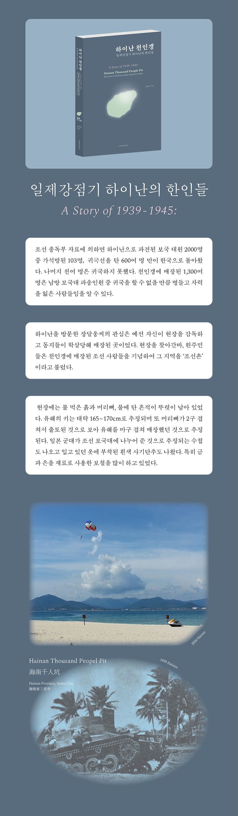 일제 강점기 중국 하이난(海南)에 끌려온 한인들의 이야기이다. 난딩(南丁) 산뤄촌(三羅村) 천인갱(千人坑 *천여 명을 매장한 구덩이)은 조선 수형자로 조직된 남방 보국대 중 광복 후 귀국을 할 수 없을 정도로 몸이 망가진 천여 명이 학살되어 집단 매장된 곳이다. 텐두(田獨) 만인갱(萬人坑 *만여 명을 매장한 구덩이) 은 석원회사에 고용되거나 일본 사람을 따라와 광산에서 작업하던 중 노동력을 상실한 노동자들이 매 맞아 죽은 곳을 기리는 장소이다. 그리고 위안부에 종사하던 박래순이 해방 후 귀국하지 않고 하이난에 살다가 생을 마쳤다는 이야기이다.