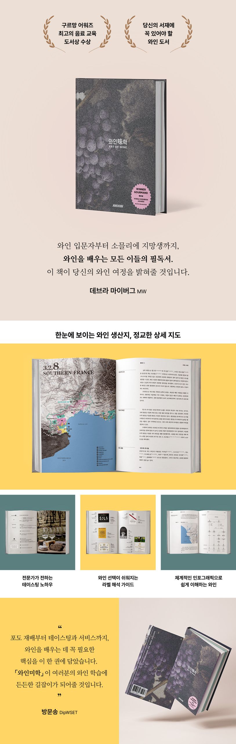 와인비전프레스와 5인의 와인 전문가가 공동 집필한 이 책은, 2015년 ‘구르망 어워즈(Gourmand World Cookbook Awards)’에서 ‘최고의 음료 교육 도서상’을 수상하며 국제적으로 그 우수성을 인정받았습니다.