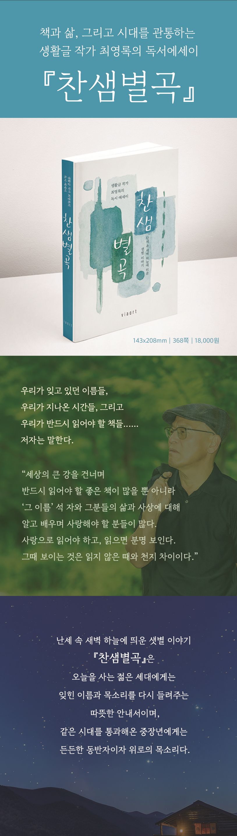 작가의 이 고백처럼, 『찬샘별곡』은 삶과 독서가 만나는 자리에서 잔잔한 감동을 전한다.