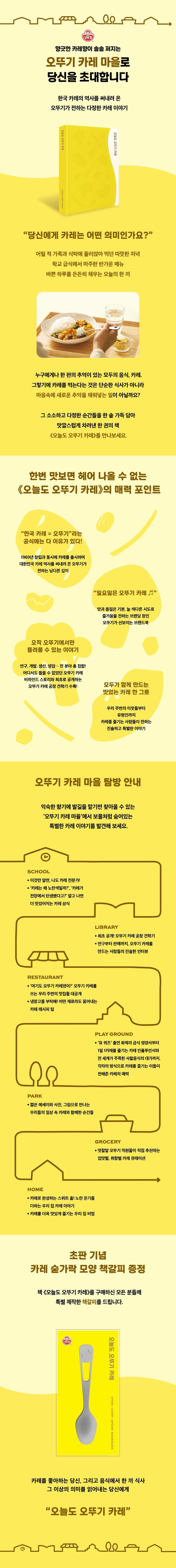 1969년 5월 5일, 글로벌 식품 브랜드 오뚜기가 회사 창립과 함께 첫 제품으로 선보인 오뚜기 카레. “일요일은 오뚜기 카레”라는 글자만 봐도 멜로디가 저절로 떠오를 만큼, 오뚜기는 한국에서 카레의 대중화를 이끌어 온 주역이다. 반세기가 넘는 시간 동안 우리와 함께한 ‘오뚜기 카레’의 이야기를 이제는 한 권의 책으로 만나볼 수 있다. 오뚜기 최초의 브랜드북 《오늘도 오뚜기 카레》는 카레에 얽힌 흥미로운 이야기와 알찬 지식, 그리고 카레와 함께한 사람들의 따뜻한 순간들을 담아 ‘오뚜기 카레 마을’로 독자들을 초대한다. 어디서도 볼 수 없었던 카레 공장 견학기와 제작 비하인드 인터뷰까지 수록되어 있어 한층 특별한 경험을 선사할 예정이다. ‘오뚜기’와 ‘카레’, 그리고 그런 오뚜기 카레를 즐기는 ‘우리’의 이야기가 가득 담긴 이 책을 통해 오뚜기 카레 마을을 여행하며, 누구나 가지고 있는 카레에 관한 추억을 되새기고 카레에 대한 새로운 시선과 감상을 넓혀보길 바란다.