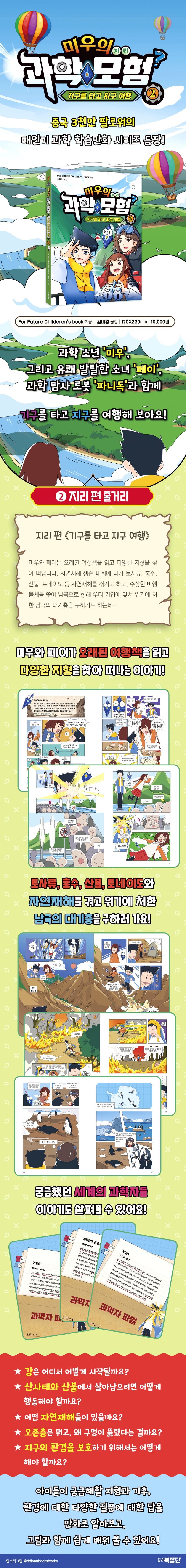 ‘미우의 과학 모험’ 시리즈는 미우의 손에 새겨진 ‘과학의 상징’을 성장시켜 신비한 과학 탐사 로봇 ‘파니독’이 완전한 성능을 되찾도록 하는 하나의 스토리를 가지고 꾸준히 뒤를 궁금해하며 읽어 나가게 합니다. 일상에서 자주 접하지만, 막상 설명하기는 어려운 여러 가지 과학 현상들을 실제로 몸으로 부딪쳐 가며 탐사하는 미우와 페이의 모험을 따라가다 보면, 자연스럽게 일상의 많은 것들을 과학적인 시선으로 볼 수 있게 될 것입니다.