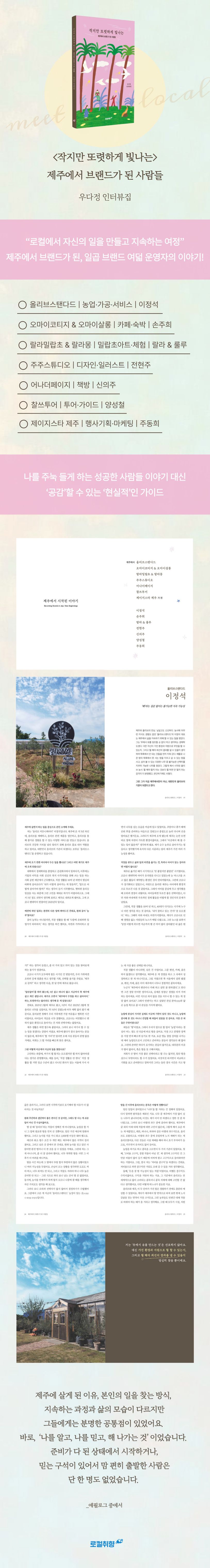 조금 앞서 시작해, 멈추지 않고 지속해 나가고 있는 제주에서 브랜드가 된 사람들의 이야기를 담은 이 인터뷰집이 하나의 참고서이자 가이드가 되어 줄 것이다.