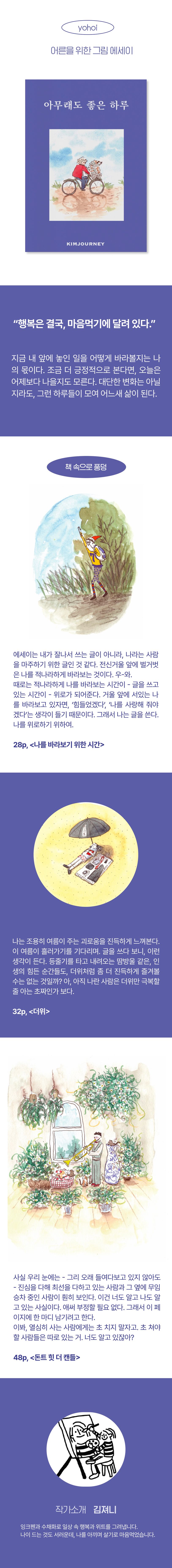 일상의따뜻한순간을그리는작가김져니의도서『아무래도좋은하루』개정판이출간되었다.이번에세이는긍정적인사고가행복한삶으로이어진다는메시지를담고있으며,사소한순간에서도기쁨을발견하는작가의따뜻한시선을전한다.작가는특유의잉크펜과수채화감성으로일상의행복과유머를그려내며독자들에게위로와공감을선사한다.그녀는평범한일상속에서발견하는소소한즐거움과상상력을바탕으로새로운시각을제시하는작업을지속해왔다.『아무래도좋은하루』는바쁜일상속에서도작은행복을찾고,긍정적인사고를통해삶을더욱풍요롭게만들어가는방법을탐구하는에세이다.이책은하루하루를소중히여기며,주어진상황속에서기쁨을발견하는법을전한다.책속에는‘시간을늘-려-쓰-기로했다’,‘관성을믿어볼까’,‘이렇게아픔을흘려보냅니다’,‘겁쟁이가세상을사는법’,‘능구렁이의시련’등흥미로운제목의글들이담겨있다.특히,‘나를바라보기위한시간’에서는에세이를쓰는과정이스스로를적나라하게마주하는과정이자위로가된다는점을강조하며,독자들에게도자신을돌아볼기회를선사한다.또한‘더위’에서는인생의힘든순간들을여름의더위처럼조금더진득하게받아들이는법에대해사색하며,‘돈트힛더캔들’에서는노력하는사람을방해하는것에대한단호한태도를보여준다.이러한이야기를통해독자들은삶을조금더유연하고너그럽게바라보는법을배울수있다.김져니작가는책을통해“어떻게든긍정적인방향으로주어진상황을해석하려한다.지금우리는상처되는일들은잊고살아도된다.하루하루를가볍고유쾌하게살아갈수있다면,그것만으로도충분하다”라는메시지를전한다.『아무래도좋은하루』는바쁜일상속에서도작은행복을놓치지않으려는이들에게따뜻한위로와응원을건네는책이될것이다.