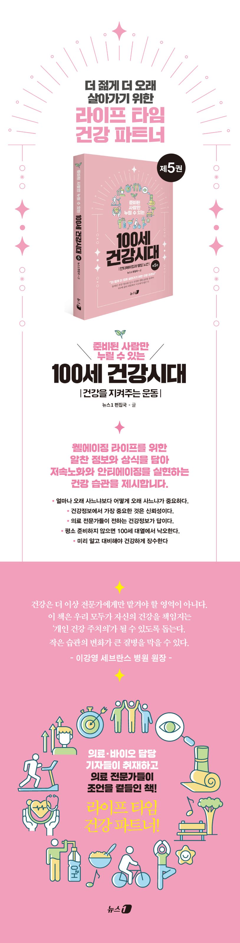 이 책의 내용들은 뉴스1이 2021년부터 연재하고 있는 ‘100세 건강’ 코너의 기사들을 집대성하고 재구성한 것이다. ‘100세 건강’ 코너는 올바른 의학 정보에 기초해 생명과 직결되는 고급 건강 정보를 접할 수 있는 공간이다. 평소 이 기사들을 즐겨보는 편인데, 우리가 주변에서 접하는 다양한 질병들을 다루고 있어 실생활에 유익하고 도움이 된다.