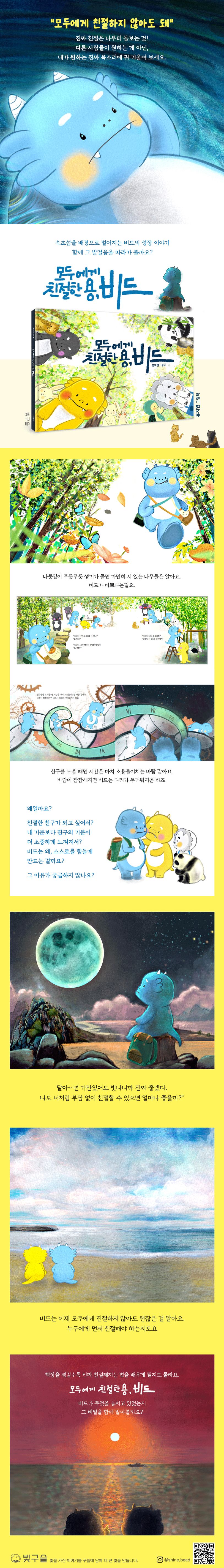 "모두에게 친절한 용, 비드"는 언제나 친구들을 돕고, 그들의 부탁을 기꺼이 들어주는 착한 용입니다. 하지만 지나치게 남을 돌보다 결국 지쳐버린 비드는 다리가 불편해지고, 자신을 돌보지 않았음을 깨닫게 됩니다. 꿈속에서 만난 자신과의 대화는 비드에게 진정한 친절의 의미를 일깨워 줍니다. 이제 비드는 자신을 먼저 사랑하고 돌보는 법을 배우게 되죠. 당신도 비드처럼 진정한 친절을 배우고 싶다면, 이 따뜻한 이야기를 만나보세요. 마음 깊은 울림을 선사할 책!