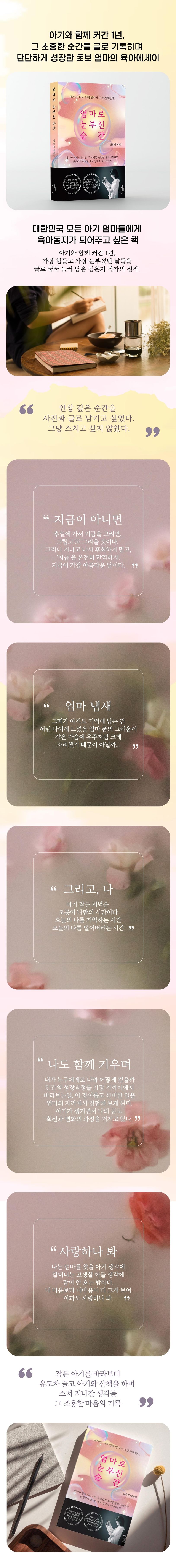 아이를 돌보는 일은 자꾸만 나를 잊게 만드는 일이지만, 그 속에서도 작가는 자주 멈춰서 자신을 다시 바라보고, 다독이고, 껴안습니다. 어쩌면 이 책은 엄마가 된 자신에게 건네는 한 권의 편지이고, 어린 시절 그리워했던 엄마 품의 기억으로부터 스스로를 회복해 가는 여정일지도 모릅니다.