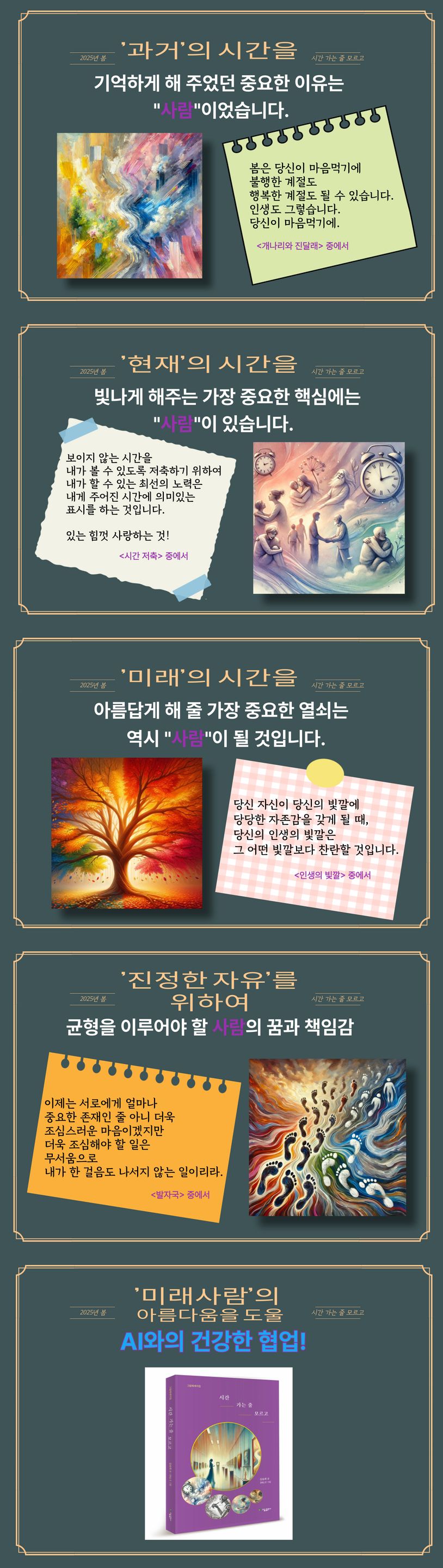 그러함에 작가 김승희는 이 그림에세이집을 통해 독자에게 인공지능(AI)의 작품 및 해설과 함께 인공지능과의 건강한 ‘혐업’의 중요성을 알리고는 있지만, 각 사람이 사람들과의 ‘함께’하는 공동체적 협력과 공유가 인공지능에 능숙해지는 것보다 더 먼저 풍성해지기를 소망하고 있습니다.