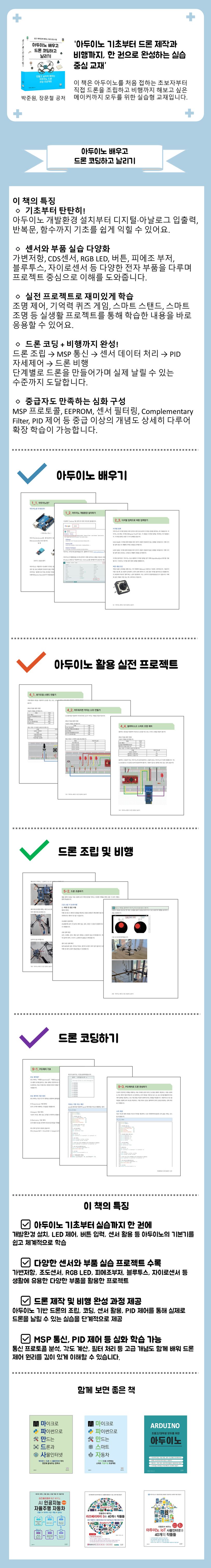 아두이노를 처음 배우는 사람은 물론, 드론 제작에 도전하고 싶은 메이커, 코딩 교육을 위한 교재를 찾는 선생님, 흥미로운 프로젝트를 찾는 학생들에게 완벽한 선택이 될 것입니다.