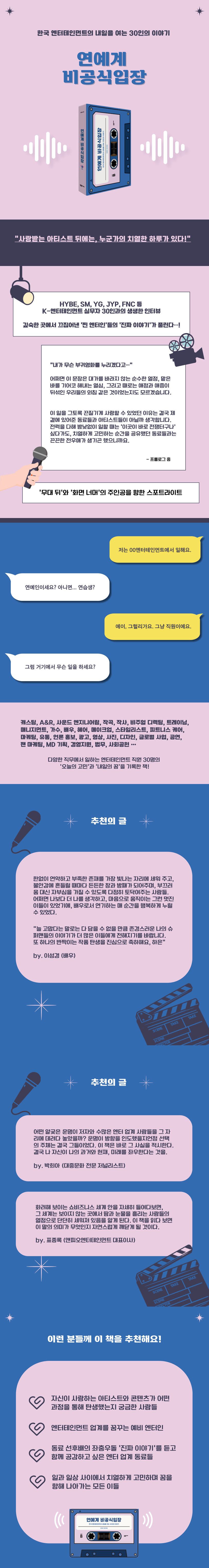 HYBE, SM, YG, JYP, FNC 등 엔터테인먼트 업계 실무자 30인의 생생한 목소리,