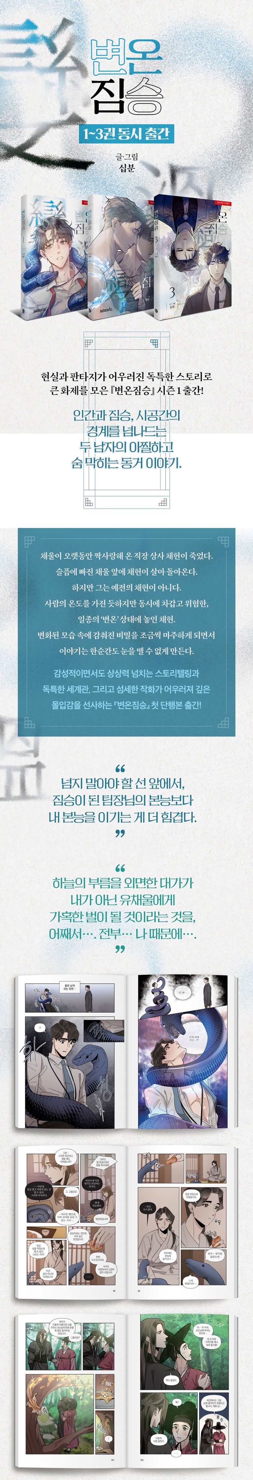 2021년부터 2024년까지 연재된 십분 작가의 웹툰 〈변온짐승〉이 책으로 출간되었다. 시즌 1(1~3권)은 1화부터 43화까지 실려 있다.