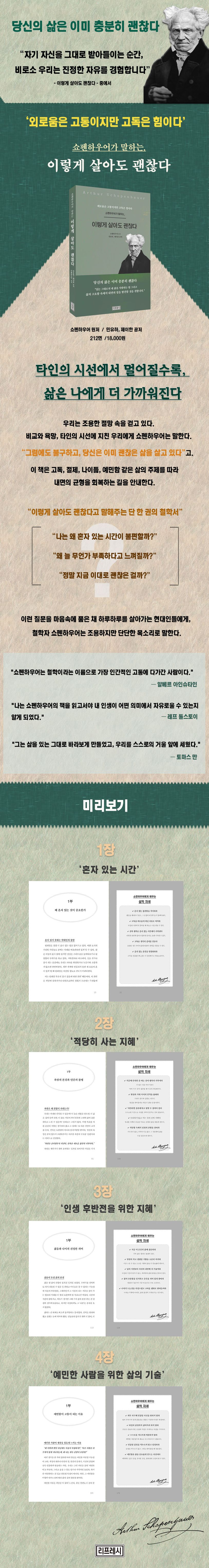 이런질문을마음속에품은채하루하루를살아가는현대인들에게,철학자쇼펜하우어는조용하지만단단한목소리로말한다.“지금이삶도,이모습도충분히괜찮다”고.