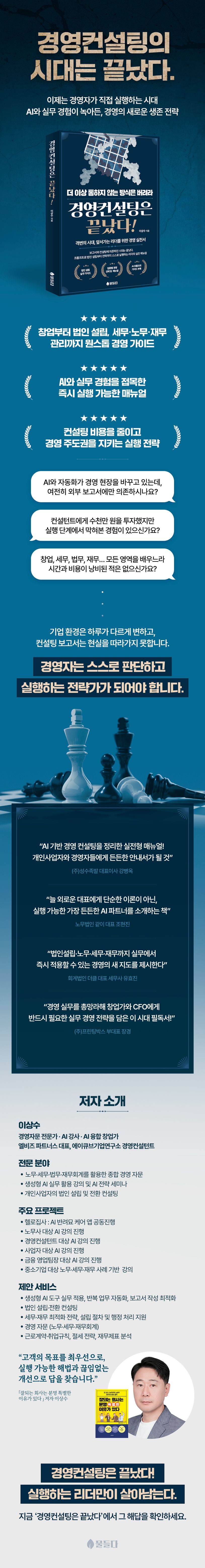 『경영컨설팅은 끝났다』는 변화하는 시대에 창업가와 경영자가 스스로 경영 실행력을 확보할 수 있도록 돕는 실전 가이드다.