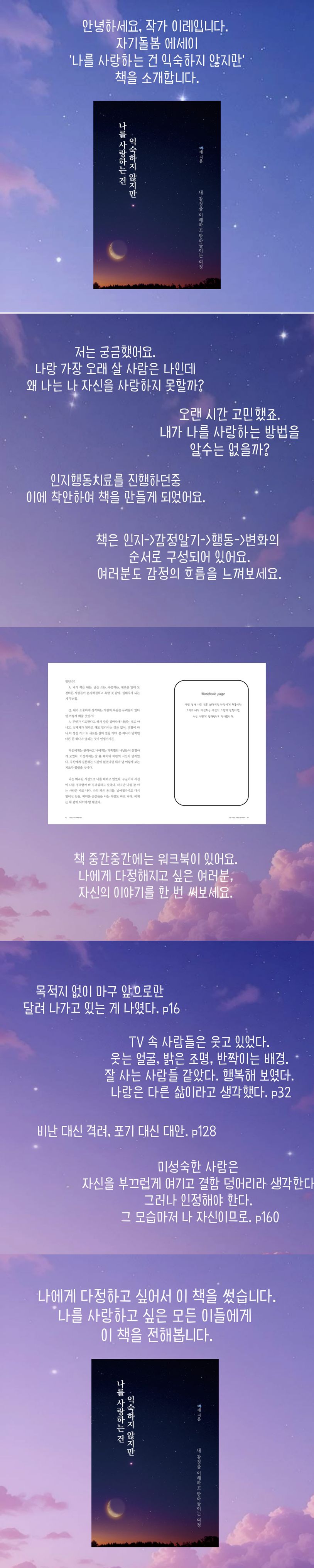 책 ‘나를 사랑하는 건 익숙하지 않지만’은 작가가 자신에게 다정해지고 싶어서 썼습니다. 그리고 그 동행에 여러분도 함께 하면 어떨까요?