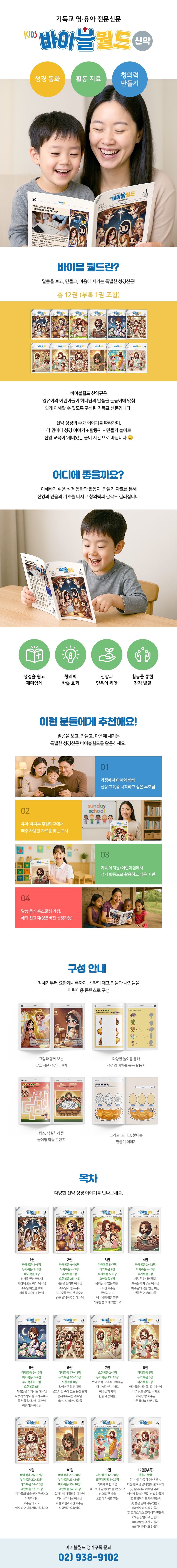 『바이블월드 구약&신약』시리즈는 만 3세 이상의 영유아를 위한 체계적인 성경 입문 콘텐츠로, 성경 이야기를 아이들의 눈높이에 맞춰 쉽게 풀어낸 활동 중심의 통합 말씀 교재다.