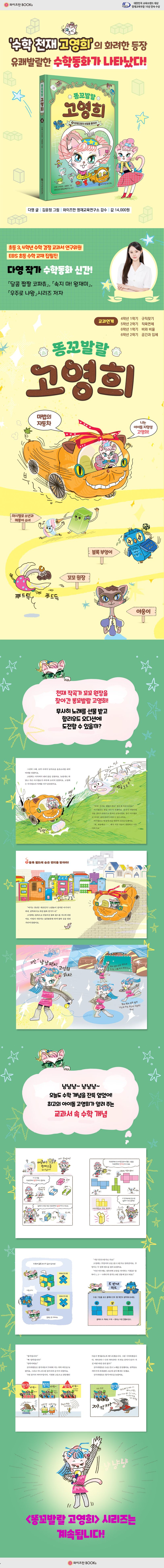 〈똥꼬발랄 고영희〉시리즈는 흥미진진한 스토리와 매력적인 등장인물, 재기 발랄한 일러스트, 교과서 속 수학 개념까지 빠짐없이 집어넣어 학습과 재미를 총망라한 차세대 수학동화의 시작을 알린다.