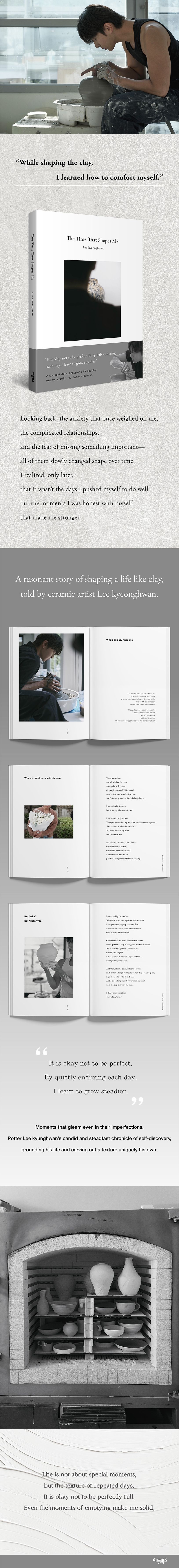 Through pottery, he discovered truths about life: that clay hardens not because it avoids fire, but because it faces it; and that in moments of anxiety and trials we, too, find our own unique texture. This book is a record of his realization. Though the phrase "It's okay to not be perfect" may sound cliché, within his words, it transforms from mere comfort to lived experience. Just as he gazes at a dented cup and says, "This shape is better," here is a way of living where even flaws become part of the process. Like the surface of pottery, it might not shine, but each time you hold it, there’s warmth that touches the heart.