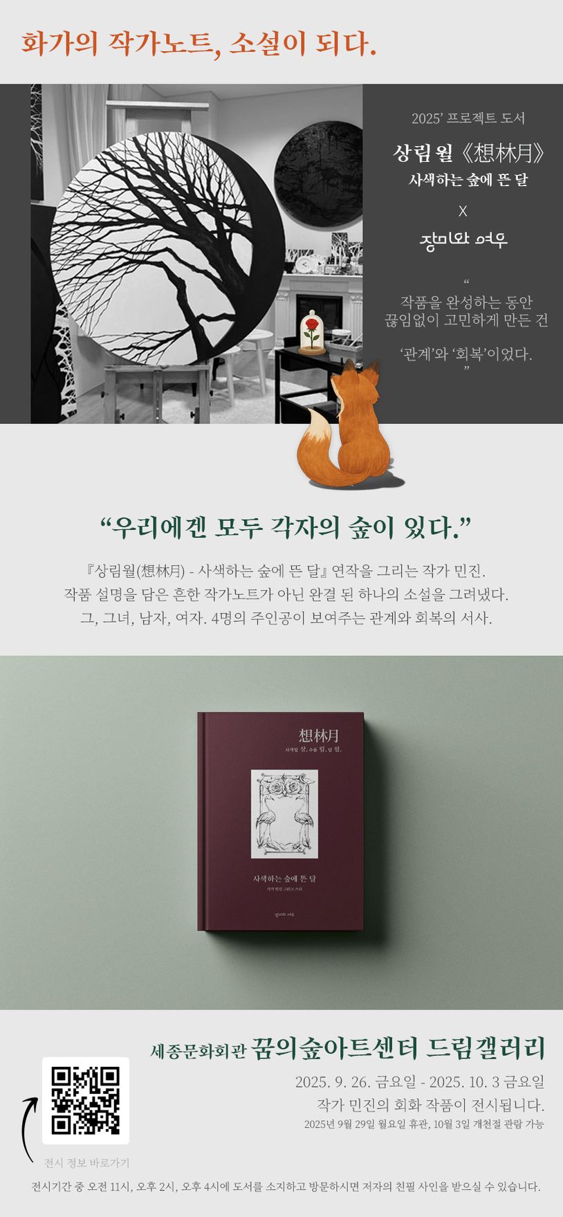 "대부분의미술작가들은자신의작품을설명하기위해'작가노트'라는것을쓴다.작가노트에는평소에잘쓰지않는생소한미학용어들이쓰이는경우도있고,어떤경우에는작가노트를읽고난후오히려작품이이해되지않는일도생긴다.소설『상림월』은소설의형식을취하고있지만,작가민진의작가노트다.장편소설과단편소설이함께엮은만큼글의양이많다.때문에미술작업을알리는데더긴시간과호흡이필요하다.그럼에도불구하고,작가는마지막문장까지힘을기울여문장의마침표를찍었다.작품을감상하는관객한분,한분에게깊은울림과이해를나누고자했던열정과의지가고스란히담긴셈이다."