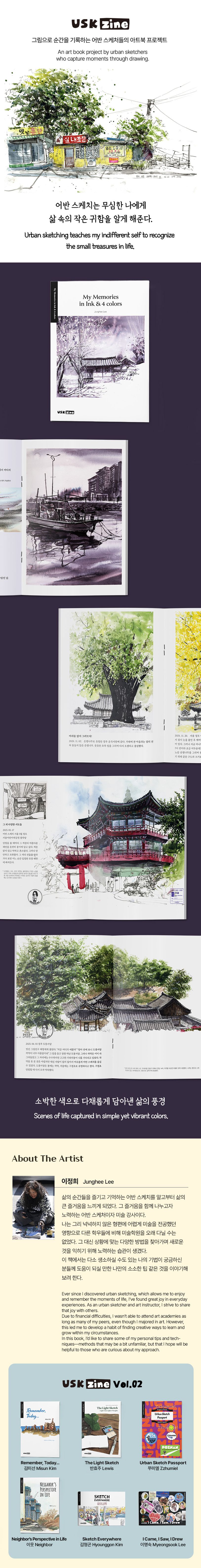 어반 스케처이자 미술 강사로 활동 중인 이정희 작가는 여행과 일상에서 마주한 순간들을 펜과 잉크, 수채 물감으로 기록해왔다. 화려한 재료 대신 먹, 잉크, 3색·4색 채색 같은 단순한 팔레트를 사용하면서도, 풍부한 표현과 다채로운 장면을 그려내는 것이 그의 작업의 특징이다.