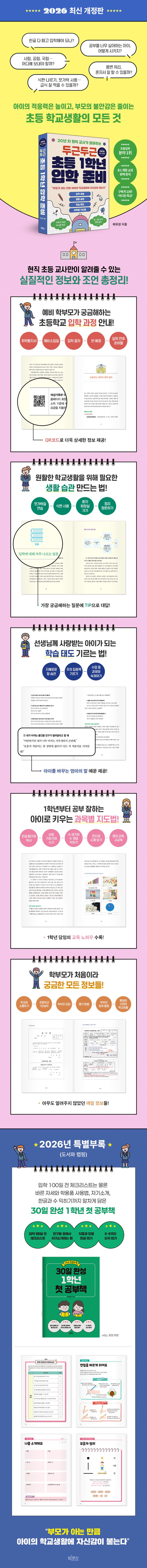 초등 학교생활은 보육까지 챙겨주는 유치원 생활과는 많은 부분이 달라진다. 혼자서 학교 화장실을 사용해야 하고, 40분 동안 한자리에 앉아 수업을 들어야 하며, 급식판을 스스로 가져오고 치워야 한다. 아직 아기 같기만 한 아이가 학교생활에 잘 적응하려면 무엇을 어떻게 도와줘야 할지, 생애 첫 입학을 앞둔 아이의 부모는 밤잠을 설칠 수밖에 없다. 게다가 한글 떼기, 쓰기, 수 개념 익히기 같은 기초 학습은 어느 정도 완성하고 입학해야 수업을 잘 따라갈 수 있을지도 큰 걱정거리다.