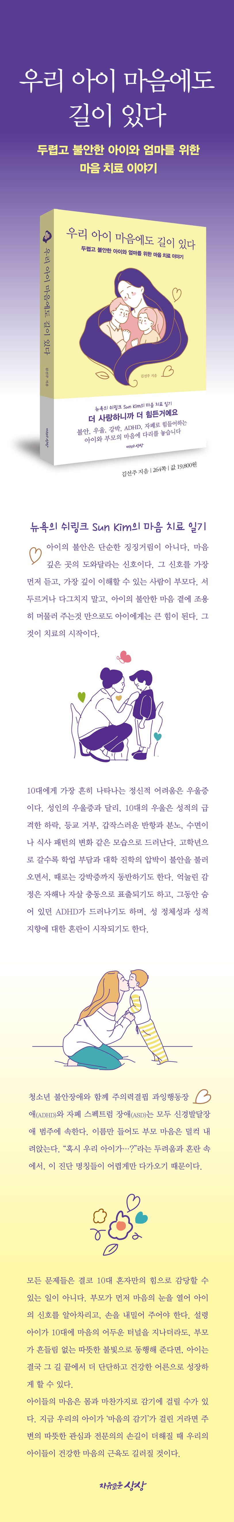 우리에게는 〈말하지 않으면 알 수 없는 것〉들로 친숙한 뉴욕의 쉬링크(심리 치료사)이자, 김선주 작가의 멘탈 고백기 이기도 하다. 어쩌다 어른이 되고, 어쩌다 부모가 된 우리 모두의 좌충우돌 자녀 양육 실패기 혹은 성공기이다. 또한 소중한 우리 아이들의 눈물 나게 감사한 회복기, 그리고 안타까운 좌절의 이야기들이기도 하다.